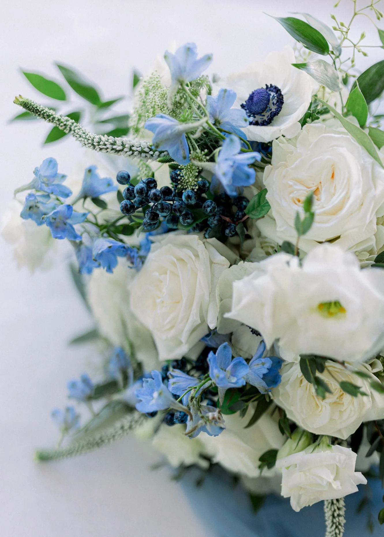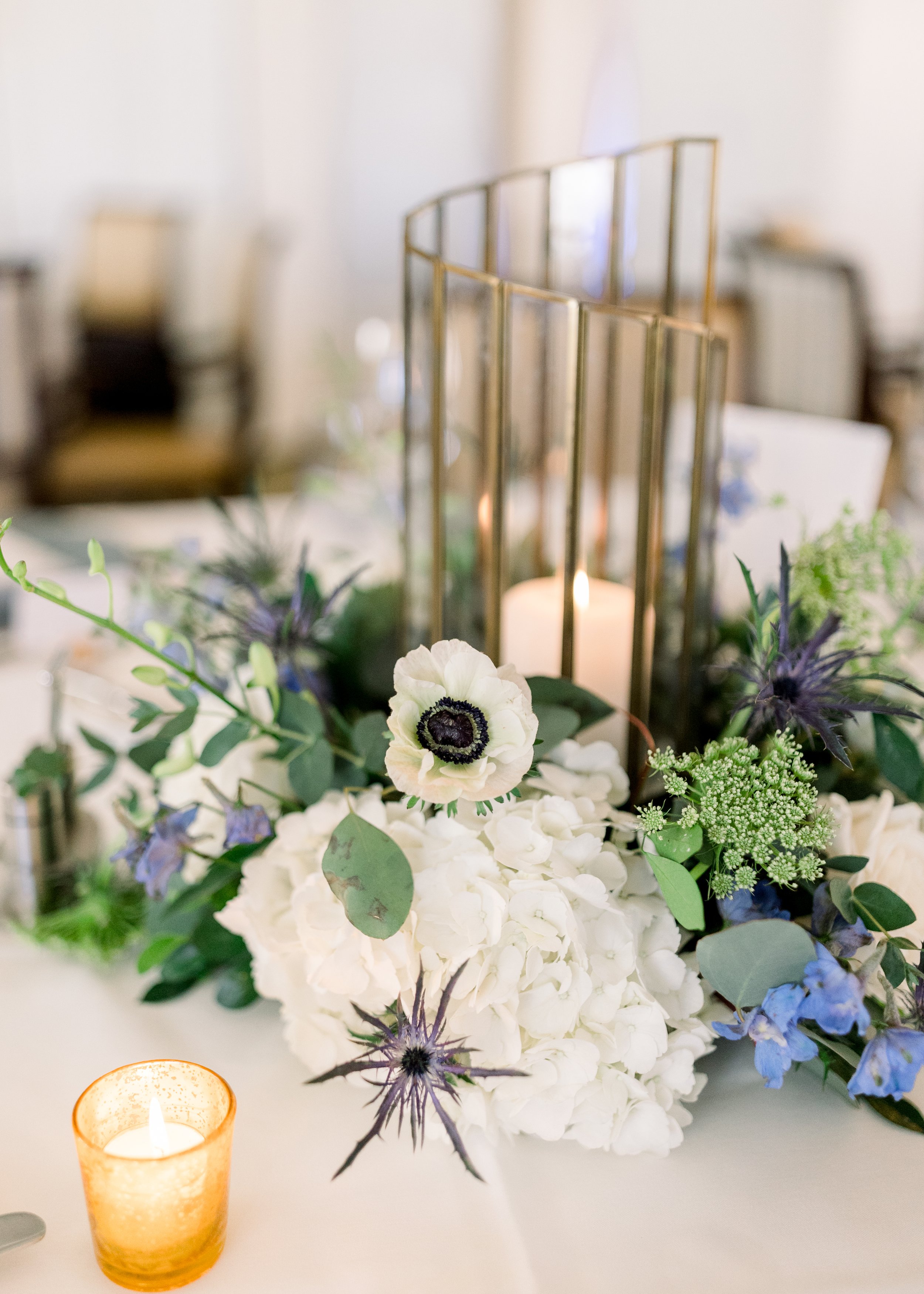Erica and Danny chose very natural colors with blue being their pop of color. I love how Sarah from Sarandipity Floral used blueberries in the bouquets! Such a unique touch! The tables were set by the staff at The Moorings, and their tableware is just beautiful! I also love the little touch of the mini pumpkins Erica bought for the name cards at each setting.